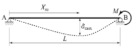 다음 구조물에서 최대처짐이 일어나는 위치까지의 거리 Xm을 구하면?