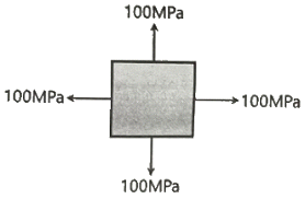 그림과 같이 이축응력(二軸應力) 받고 있는 요소의 체적변형률은? (단, 이 요소의 탄성계수 E=2×105MPa, 푸아송 비 ν=0.3이다.)