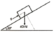 그림과 같은 30° 경사진 언덕에 40kN의 물체를 밀어 올릴 때 필요한 힘 P는 최소 얼마 이상이어야 하는가? (단, 마찰계수는 0.25이다.)