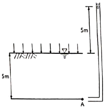 그림과 같은 지반에서 재하순간 수주(水柱)가 지표면(지하수위)으로부터 5m이었다. 40% 압밀이 일어난 후 A점에서의 전체 간극수압은? (단, 물의 단위중량은 9.81kN/m3이다.)