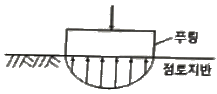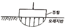 하중이 완전히 강성(剛性) 푸팅(Footing) 기초판을 통하여 지반에 전달되는 경우의 접지압(또는 지반반력) 분포로 옳은 것은?