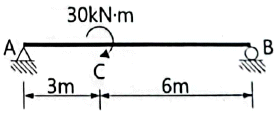 그림과 같은 단순보에서 C점에 30kN·m의 모멘트가 작용할 때 A점의 반력은?