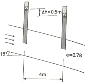 아래 그림에서 투수계수 k=4.8×10-3cm/s일 때 Darcy 유출속도(v)와 실제 물의 속도(침투속도, vs)는?