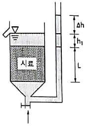 수조에 상방향의 침투에 의 한 수두를 측정한 결과, 그림과 같이 나타났다. 이때 수조 속에 있는 흙에 발생하는 침투력을 나타낸 식은? (단, 시료의 단면적은 A, 시료의 길이는 L, 시료의 포화단위중량은 γsat, 물의 단위중량은 γwcm이다.)