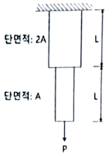 그림과 같은 인장부재의 수직변위를 구하는 식으로 옳은 것은? (단, 탄성계수는 E이다.)