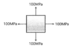 그림과 같이 이축응력을 받고 있는 요소의 체적변형률은? (단, 탄성계수(E)는 2×105 MPa, 푸아송 비(ν)는 0.3이다.)