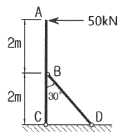그림과 같은 구조물의 BD 부재에 작용하는 힘의 크기는?