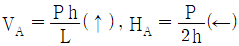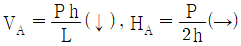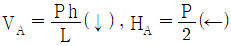 그림과 같은 3힌지 아치의 중간 힌지에 수평하중 P가 작용할 때 A지점의 수직반력(VA)과 수평 반력(HA)은?