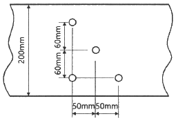 그림과 같이 지름 25mm의 구멍이 있는 판(plate)에서 인장응력 검토를 위한 순폭은?