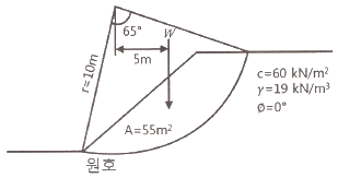 그림과 같은 사면에서 활동에 대한 안전율은?