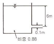 일 때 지름 0.1m의 관을 통과하는 유량은? (단, 수면은 일정하게 유지된다.)