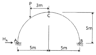 그림과 같은 3힌지 아치에서 A점의 수평반력(HA)은?