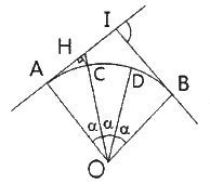 그림과 같은 반지름=50m 인 원곡선에서