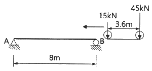 그림과 같은 지간(span) 8m 인 단순보에 연행하중에 작용할 때 절대최대휨모멘트는 어디에서 생기는가?