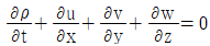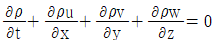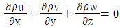 흐르는 유체 속의 한 점(x, y, z)의 각 측방향의 속도성분을 (u, v, w)라 하고 밀도를 ρ, 시간을 t로 표시할 때 가장 일반적인 경우의 연속방정식은?