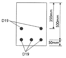그림과 같은 인장철근을 갖는 보의 유효깊이는? (단, D19철근의 공칭단면적은 287 mm2 이다.)
