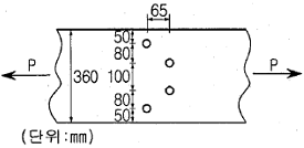 그림과 같은 두께 13mm의 플레아트에 4개의 볼트구멍이 배치 되어있을 때 부재의 순단면적은? (단, 구멍의 지름은 24mm이다.)