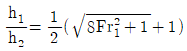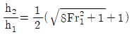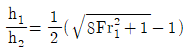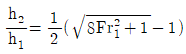 도수(hydraulic jump)전후의 수심 h1, h2의 관계를 도수 전의 Froude 수 Fr1의 함수로 표시한 것으로 옳은 것은?