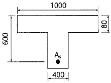 강도설계법에서 그림과 같은 단철근 T형보의 공칭휨강도(Mn)는? (단, As=5000mm2, fck=21MPa, fy=300MPa, 그림의 단위는 mm이다.)