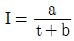 어떤 지역의 강우지속시간(t)과 강우강도 역수(1/I)와의 관계를 구해보니 그림과 같이 기울기가 1/3000, 절편이 1/150이 되었다. 이 지역의 강우강도(I)를 Talbot형 (