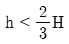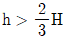위어(weir)에 물이 월류할 경우 위어의 정상을 기준으로 상류측 전수두를 H, 하류수위를 h라 할 때, 수중위어(submerged weir)로 해석될 수 있는 조건은?
