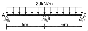 그림과 같은 연속보에서 B점의 지점 반력을 구한 값은?