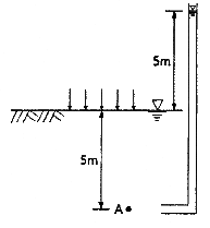 그림과 같은 지반에 재하순간 수주(水柱)가 지표면으로부터 5m 이었다. 20% 압밀이 일어난 후 지표면으로부터 수주의 높이는? (단, 물의 단위중량은 9.81 kN/m3 이다.)