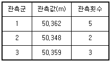 동일 구간에 대해 3개의 관측군으로 나누어 거리관측을 실시한 결과가 표와 같을 때, 이 구간의 최확값은?
