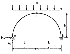 그림과 같은 3힌지 아치에서 A점의 수평반력(HA)은?