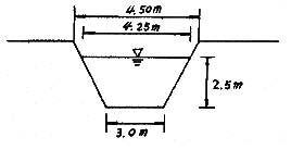 수로경사 I = 1/2500, 조도계수 n = 0.013m-1/3·s인 수로에 아래 그림과 같이 물이 흐르고 있다면 평균유속은? (단, Manning의 공식을 사용한다.)