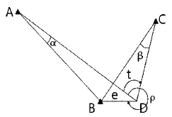 그림과 같은 편심측량에서 ∠ABC는? (단,