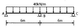 그림과 같은 연속보에서 B점의 지점 반력은?