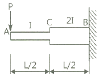 그림과 같은 캔틸레버 보에서 A점의 처짐은? (단, AC구간의 단면2차모멘트 I이고, CB구간은 2I이며, 탄성계수 E는 전 구간이 동일하다.)