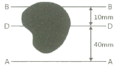 아래 그림과 같은 불규칙한 단면의 A-A축에대한 단면 2차 모멘트는 35×106mm4 이다. 단면의 총 면적이 1.2×104mm2 이라면, B-B축에 대한 단면 2차모멘트는? (단, D-D축은 단면의 도심을 통과한다.)