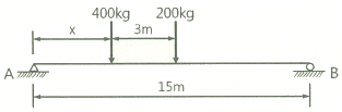 아래 그림과 같은 보에서 A점의 반력이 B점의 반력의 두 배가 되는 거리 x는?
