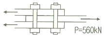 다음 그림의 고장력 볼트 마찰이음에서 필요한 볼트 수는 최소 몇 개인가? (단, 볼트는 M22(ø=22mm), F10T 를 사용하며, 마찰이음의 허용력은 48kN이다.)
