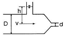 그림과 같은 노즐에서 유량을 구하기 위한 식으로 옳은 것은? (단, 유량계수는 1.0으로 가정한다.)