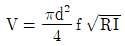 관수로의 흐름에서 마찰손실계수를 f, 동수반경을 R, 동수경사를 I, Chezy 계수를 C라 할 때 평균 유속 V는?