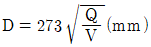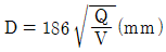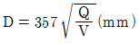 펌프의 흡입구경(口徑)을 결정하는 식으로 옳은 것은? (단, Q: 펌프의 토출량(m3/min), V: 흡입구의 유속(m/s))