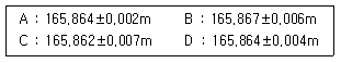 어느 두 지점의 사이의 거리를 A, B, C, D 4명의 사람이 각각 10회 관측한 결과가 다음과 같다면 가장 신뢰성이 낮은 관측자는?