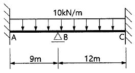 그림과 같은 보에서 지점 B의 휨모멘트 절댓값은? (단, EI는 일정하다.)