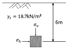 그림에서 지표면으로부터 깉이 6m에서의 연직응력(σv)과 수평응력(σh)의 크기를 구하면? (단, 토압계수는 0.6이다.)