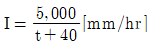 로 표시되는 어느 도시에 있어서 20분간의 강유량 R20은? (단, t의 단위는 분이다.)