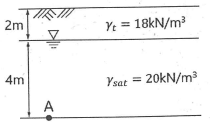 그림에서 A점 흙의 강도정수가 c′=30kN/m2, ø′=30°일 때, A점에서의 전단강도는? (단, 물의 단위중량은 9.81kN/m3이다.)