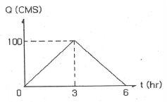 유역면적 20km2 지역에서 수공구조물의 축조를 위해 다음 아래의 수문곡선을 얻었을 때, 총 유출량은?