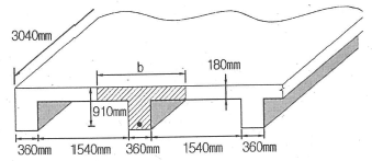 유효깊이(d)가 910mm인 아래 그림과 같은 단철근 T형보의 설계휨강도(øMn)를 구하면? (단, 인장철근량(As)은 7652mm2, fck=21MPa, fy=350MPa, 인장지배단면으로 ø=0.85, 경간은 3040mm이다.)
