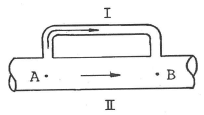 그림과 같이 A에서 분기했다가 B에서 다시 합류하는 관수로에 물이 흐를 때 관Ⅰ과 Ⅱ의 손실수두에 대한 설명으로 옳은 것은? (단, 관Ⅰ의 지름 < 관Ⅱ의 지름이며, 관의 성질은 같다.)