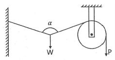 그림과 같은 구조물에 하중 W가 작용할 때 P의 크기는? (단, 0° < α < 180°이다.)