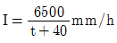 우수가 하수관로로 유입하는 시간이 4분, 하수관로에 서의 유하시간이 15분, 이 유역의 유역면적이 4km2, 유출계수는 0.6, 강우강도식