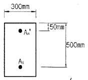 As=4000mm2, As′=1500mm2로 배근된 그림과 같은 복철근 보의 탄성처짐이 15mm이다. 5년 이상의 지속하중에 의해 유발되는 장기처짐은 얼마인가?